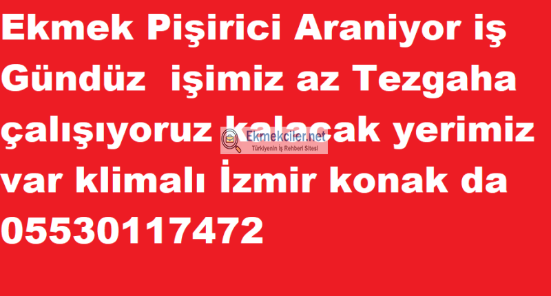 Ekmek Pişirici Araniyor iş Gündüz işimiz az Tezgaha çalışıyoruz kalacak yerimiz var klimalı İzmir konak da 05530117472