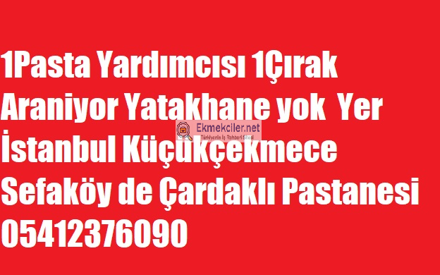 1Pasta Yardımcısı 1Çırak Araniyor Yatakhane yok Yer İstanbul Küçükçekmece Sefaköy de Çardaklı Pastanesi 05412376090