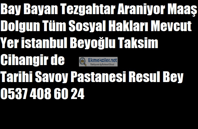 Bay Bayan Tezgahtar Araniyor Maaş Dolgun Tüm Sosyal Hakları Mevcut Yer istanbul Beyoğlu Taksim Cihangir de Tarihi Savoy Pastanesi Resul Bey 05374086024