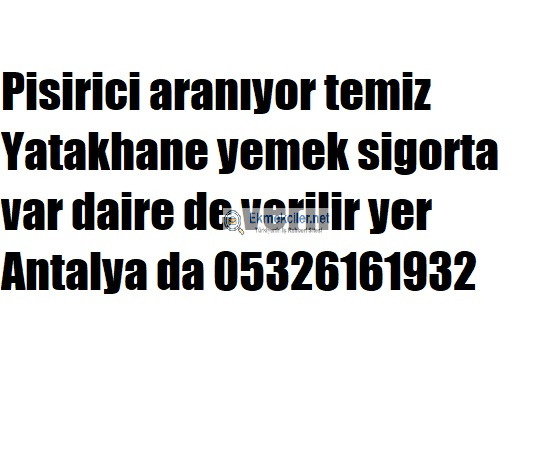 Pisirici aranıyor temiz Yatakhane yemek sigorta var daire de verilir yer Antalya da 05326161932