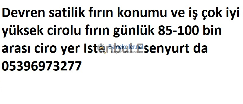 Devren satilik fırın konumu ve iş çok iyi yüksek cirolu fırın günlük 85-100 bin arası ciro yer Istanbul Esenyurt da 05396973277