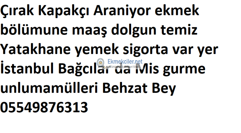 Çırak Kapakçı Araniyor ekmek bölümune maaş dolgun temiz Yatakhane yemek sigorta var yer İstanbul Bağcılar da Mis gurme unlumamülleri Behzat Bey 05549876313