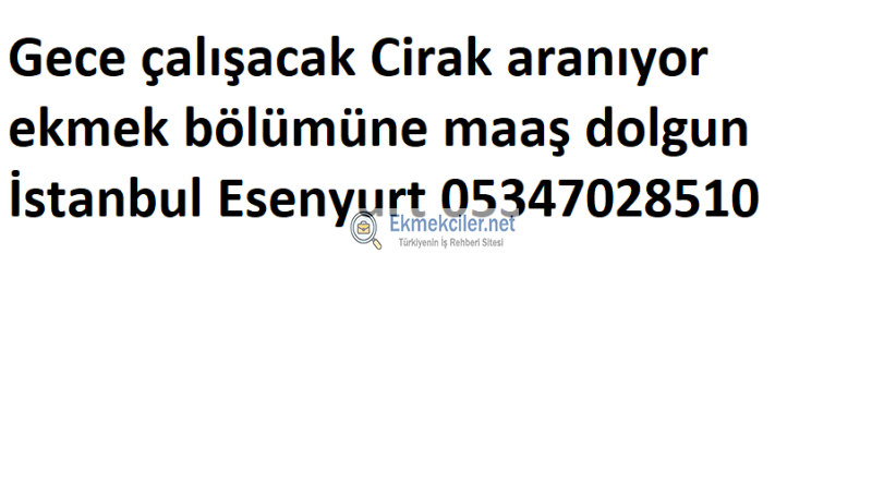 Gece çalışacak Cirak aranıyor ekmek bölümüne maaş dolgun İstanbul Esenyurt 05347028510