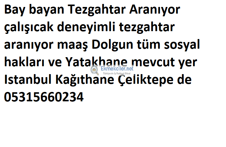 Bay bayan Tezgahtar Aranıyor maaş Dolgun tüm sosyal hakları ve Yatakhane mevcut yer Istanbul Kağıthane Çeliktepe de 05315660234