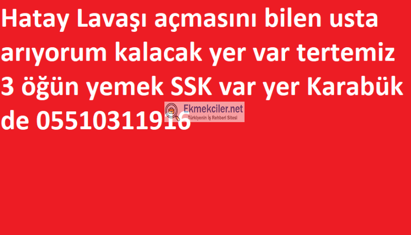Hatay Lavaşı açmasını bilen usta arıyorum kalacak yer var tertemiz 3 öğün yemek SSK var yer Karabük de 05510311916