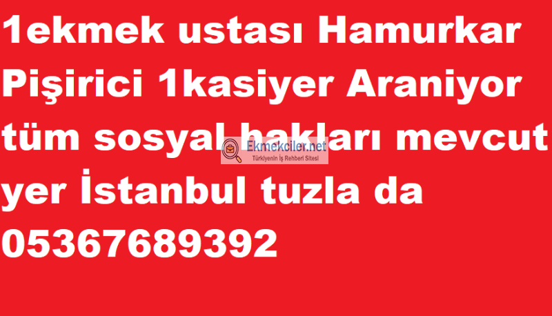 1Hamurkar Pişirici 1kasiyer Araniyor tüm sosyal hakları mevcut yer İstanbul tuzla da 05367689392