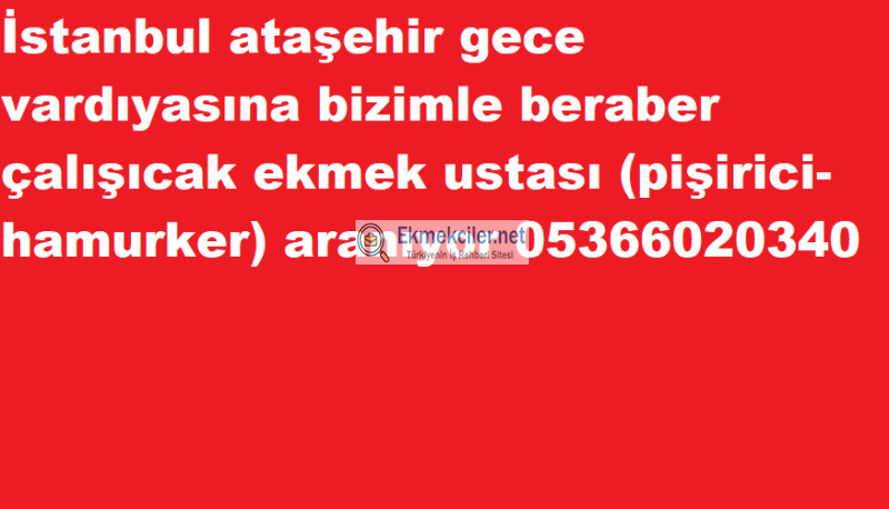 İstanbul ataşehir gece vardıyasına bizimle beraber çalışıcak ekmek ustası (pişirici-hamurker) aranıyor detaylı bilgi için lütfen arayınız 0 (536) 602 03 40
