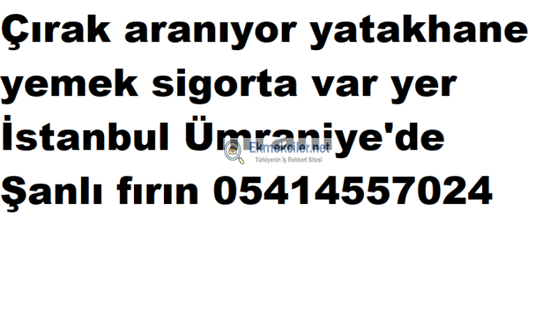 Çırak aranıyor yatakhane yemek sigorta var yer İstanbul Ümraniyede Şanlı fırın 05414557024