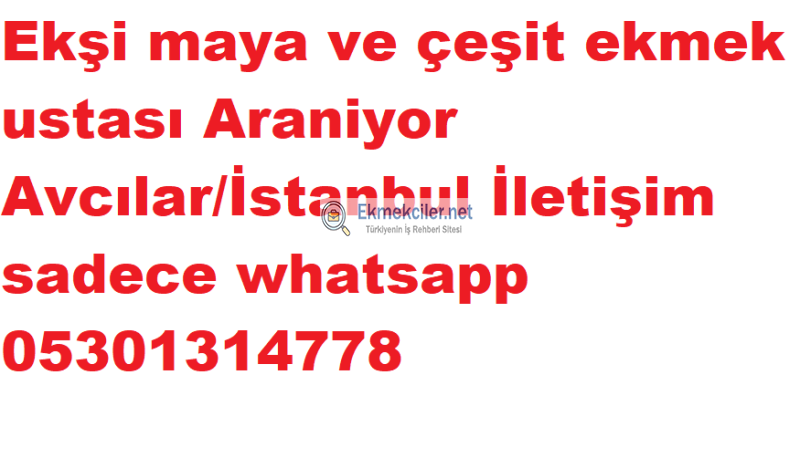 Ekşi maya ve çeşit ekmek ustası Araniyor Avcılar/İstanbul İletişim sadece whatsapp 05301314778