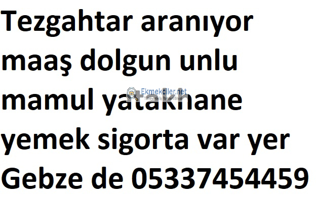Tezgahtar aranıyor maaş dolgun unlu mamul yatakhane yemek sigorta var yer Gebze de 05337454459